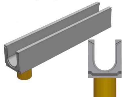 Бетонный лоток BGU с водосливом № 10-0, h445, DN300, C250 в Махачкале в наличии и под заказ по цене от 10 т.р. за м3.