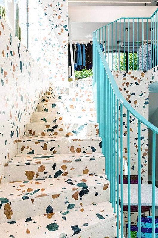 Терраццо позволяет заливать любые формы (полы, ступени, пороги, столешницы, подоконники, раковины, подонны душевых кабин, предметы интерьера) и миксовать любые материалы. А с помощью специально подготовленных металлических вставок и разделителей создаются рисунки с мельчайшими деталями. TERRAZZO используется в жилой и коммерческой недвижимости, в городской и загородной среде. Облицовки столешниц, стоек, пола, лестниц, раковин и очень много другого Вы создадите с помощью Терраццо.